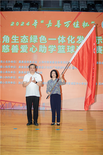 嘉善县慈善总会将“慈善爱心助学篮球邀请赛”会旗交接给下一届举办地青浦,进一步推动三地慈善工作深度融合,合作共赢。