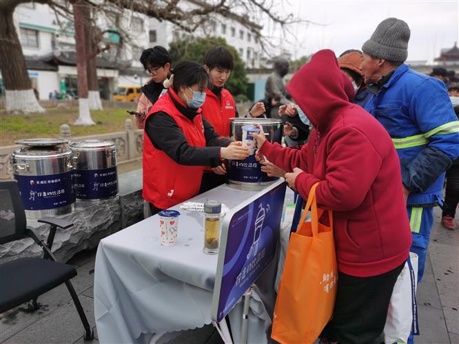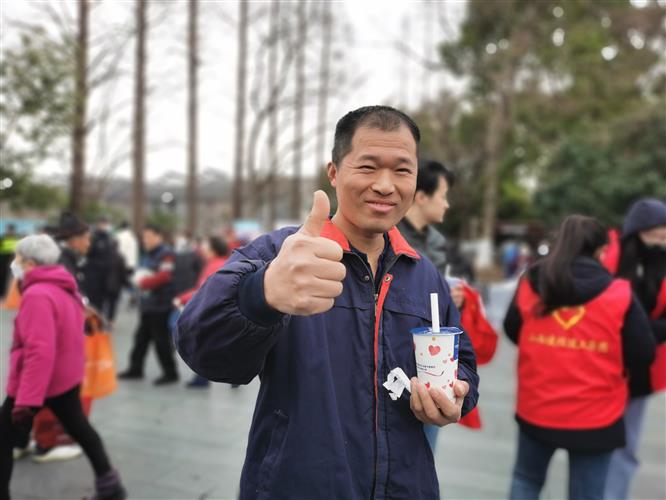 天还没亮,志愿者们便开始忙碌,清洗银耳、熬煮红枣、封装杯口,只为将一杯杯热气腾腾、香甜醇厚的红枣银耳羹送到户外一线工人手中。9:30,志愿者们准时“开张”,在朱家角镇银杏树广场化身行走的“饮品店”,将精心熬制的爱心热饮送到环卫工人、快递小哥、社区老人及居民手中。一杯甜羹入口,暖胃更暖心。“每天清晨我们都会早早上岗打扫街道,今天喝到这杯热乎乎的银耳羹,真的特别温暖。”环卫工人李师傅接过热饮后感慨地说道。本次活动共派发爱心热饮100余杯,让户外工作者感受到来自社会的关怀,也在社区内营造了弘扬雷锋精神、传播慈善文化的良好氛围。
