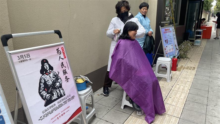 赵巷镇“巷里便民圈”公益活动开展了“学习雷锋”便民服务,为辖区居民提供了理发、磨刀、修伞以及健康问诊咨询等多项暖心服务,切实满足居民的实际需求。