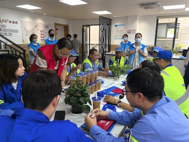 6月25日,青浦区慈善超市“行走的饮品店”项目走进上海美都环卫服务有限公司“田爱萍劳模创新工作室”,开展“夏日送清凉”公益活动。活动邀请了青浦区精神卫生中心的医生志愿者参与,为奋战在高温下的一线环卫工人送去精心熬制的红枣银耳羹,在炎炎夏日里传递关爱与敬意。