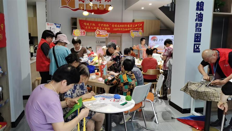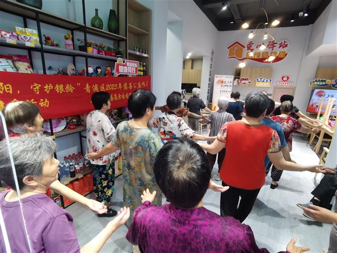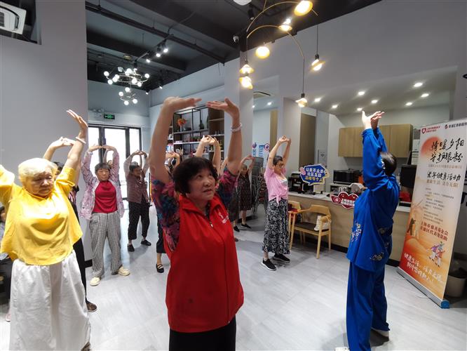 在一楼“情暖夕阳”专区,非遗手工活动总是洋溢着欢声笑语。每周2-3次的传统工艺课程,让老人们重拾年轻时的创作热情。皮影戏课堂上,老人们专注地雕刻着皮影人物;扎染工作坊里,蓝白相间的布料在巧手中变幻出独特纹样;竹编课上,一根根竹篾在老人们的指尖翻飞,逐渐成型为精美的收纳篮。“以前在家只能看电视,现在动手又动脑,生活有滋有味!”一位参与活动的老人感慨道。而健身活动同样热闹非凡。清晨的八段锦课程吸引了不少养生爱好者,在专业教练的指导下,老人们动作整齐划一,呼吸吐纳间尽显从容;广场舞,更是让整个超市充满活力,欢快的音乐声中,老人们舞步轻盈,笑容灿烂,纷纷表示“以前总觉得自己老了,现在跟着大家一起锻炼,感觉身体轻快多了,连睡眠都变好了。”