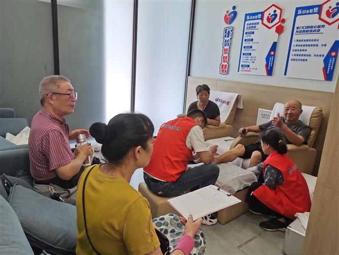入口处的便民服务区的人气同样居高不下。志愿者理发师们细心为老人们修剪发型;缝纫服务台前,阿姨们带着需要修改的衣服排队等候;磨刀师傅熟练地打磨着各种刀具,金属与磨石碰撞的声音此起彼伏;扦脚服务则让不少老人直呼“太贴心了”。“这些看似小的服务,对我们老年人来说却是实实在在的便利,进来一趟,琐事全搞定!”正在等待扦脚的李大爷说道,“真的帮我们解决了很多生活难题。”