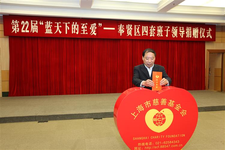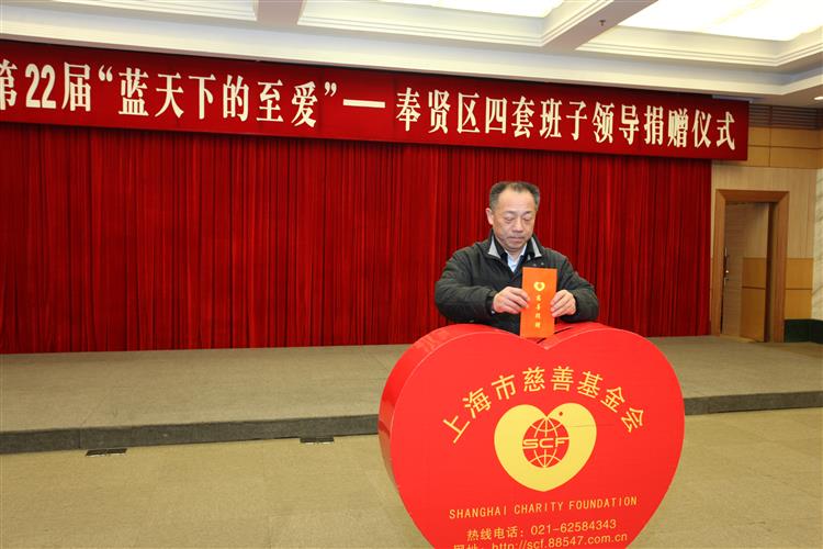 上海慈善网讯 12月26日上午,市慈善基金会奉贤区分会举行第二十二届“蓝天下的至爱”区四套班子领导慈善捐赠仪式。全区各级领导干部纷纷带头向困难家庭捐款,“帮助他人,阳光自己”,用实际行动支持慈善事业。