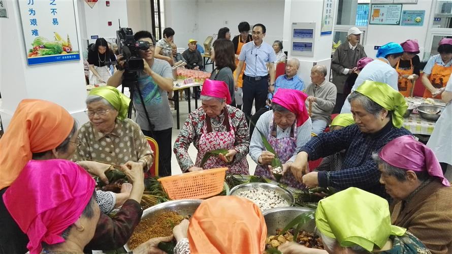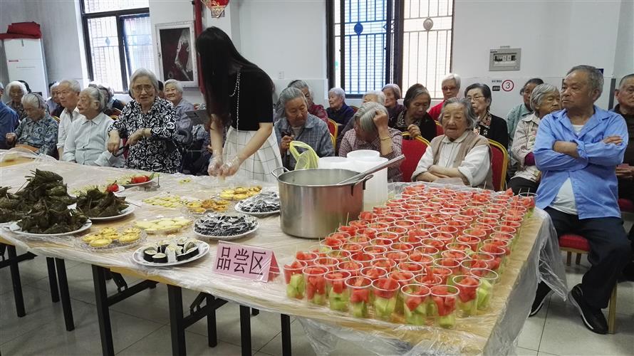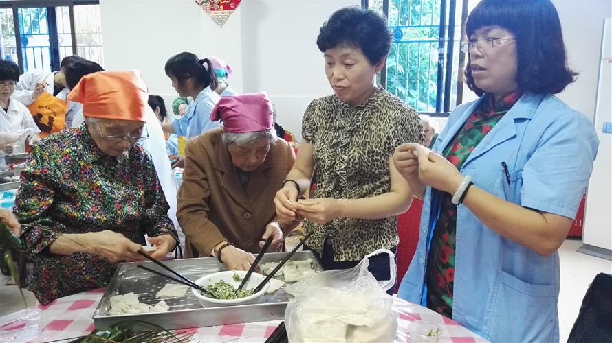 上海慈善网讯 6月7日下午,奉贤区福利院举行“舌尖上的美味”迎端午庆祝活动。奉贤区民政局、市慈善基金会奉贤区分会、老年基金会奉贤分会有关领导一起到院祝贺。活动中,福利院老人、工作人员与来宾一起各自施展出自己拿手厨艺,制作粽子、饺子、汤圆、馄饨、蛋羔、寿司等十多种传统中西小吃供大家品尝,还进行投票评比出最佳人气美食、最家传统美食,现场其乐融融。