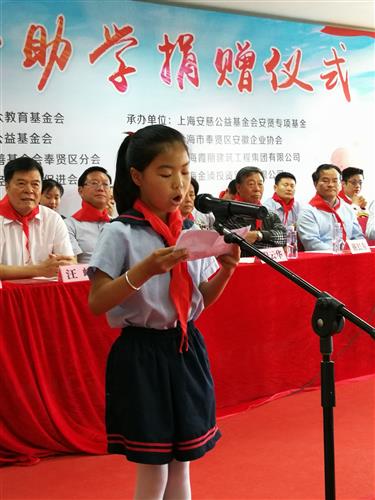 此次助学款项由安慈公益基金会出资。市慈善基金会奉贤区分会会长陈洪凡、副会长兼秘书长戚爱国参加活动。
