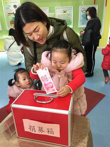 幼儿园小朋友积极参与献爱心活动 积极参与义卖活动