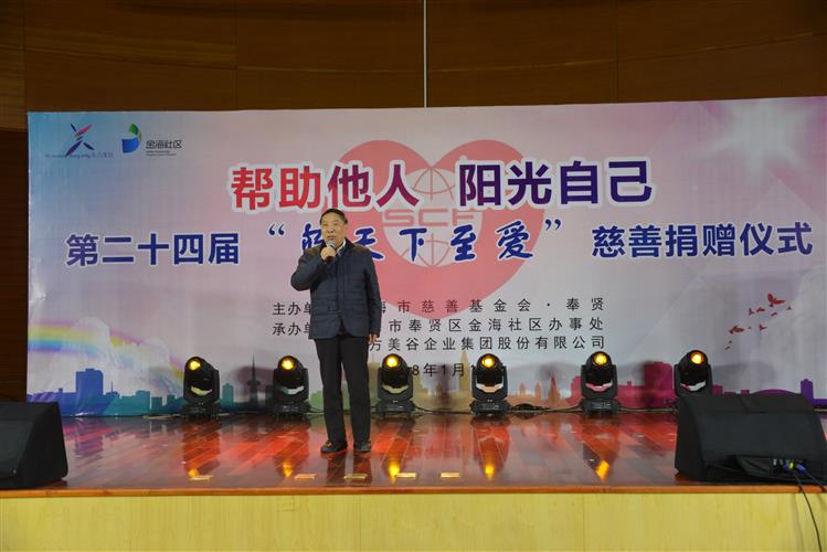 此次活动由市慈善基金会·奉贤主办,奉贤区金海社区办事处、东方美谷企业集团股份有限公司承办。上海市慈善基金会·奉贤会长陈洪凡参加捐赠仪式并讲话,副会长兼秘书长戚爱国向爱心企业颁发捐赠证书。