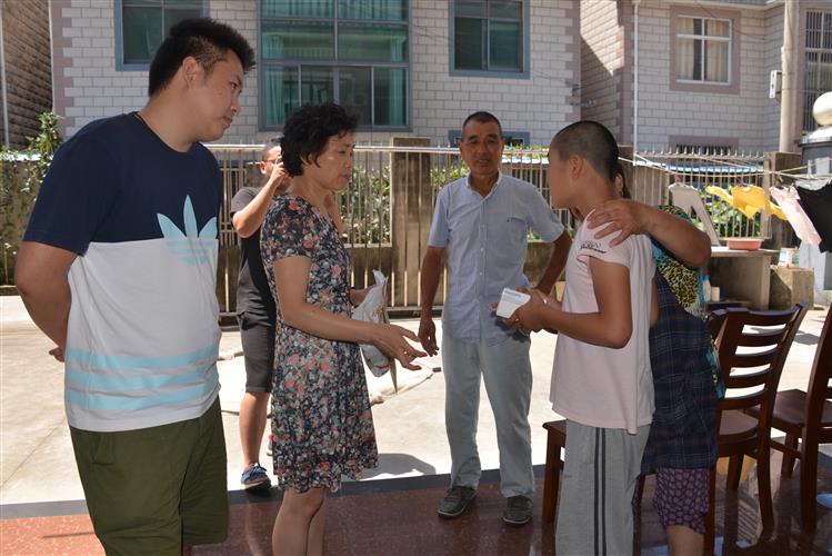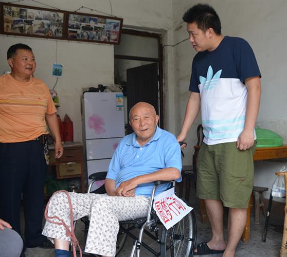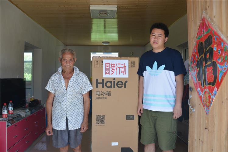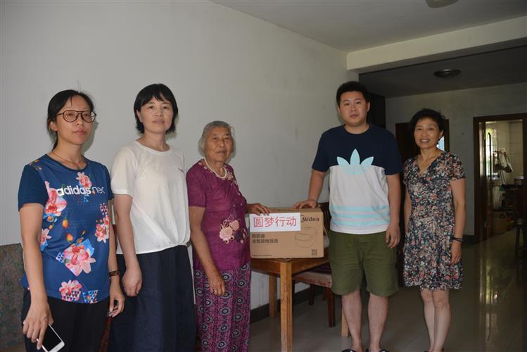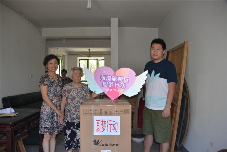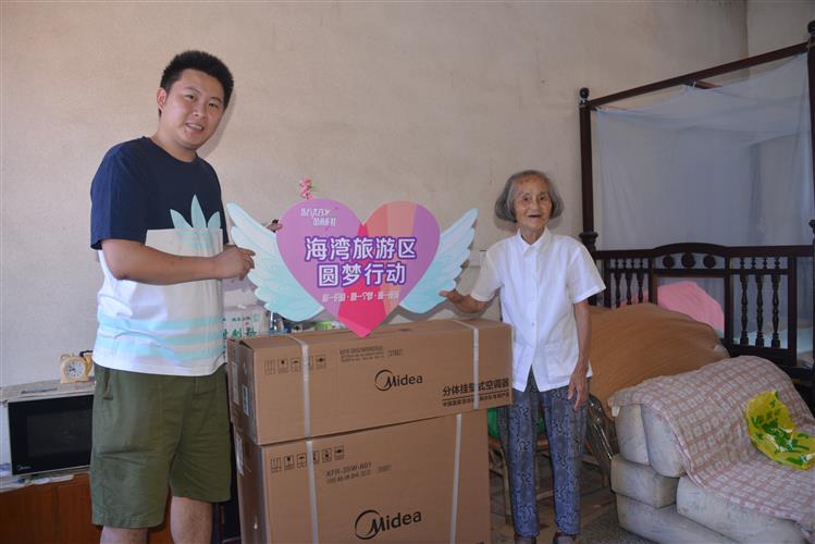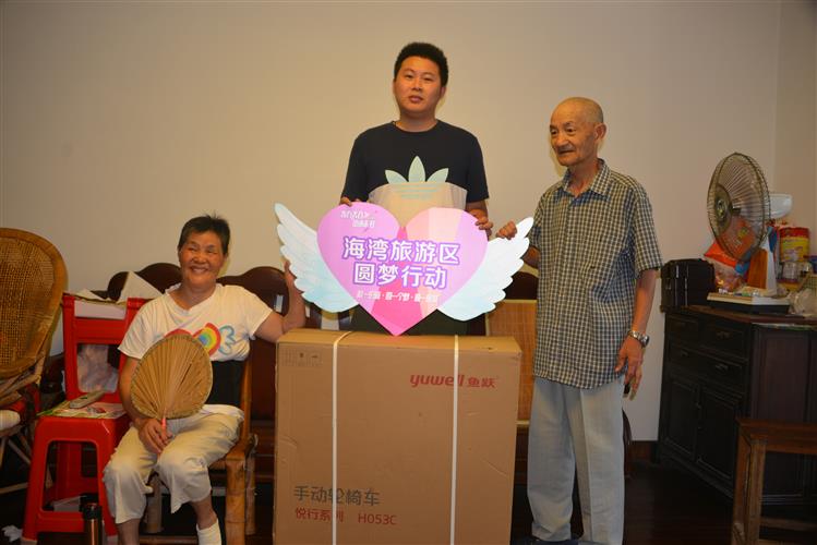 经过一段时间筹备,近日儿子姜叶璈在上海市慈善基金会·奉贤工作人员的陪同下,冒着酷暑先后来到四团镇和海湾旅游区,行程50公里,为8户困难家庭一一送上梦想物资,其中包括空调、冰箱、电脑、洗衣机、轮椅车等,总计价值1万多元。