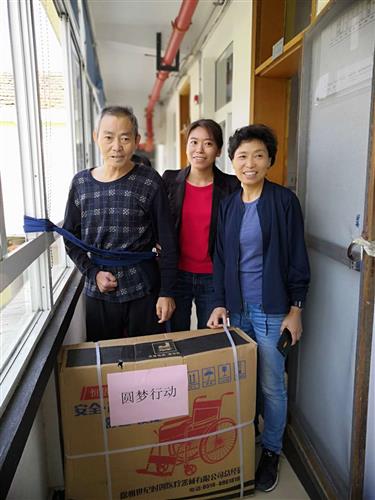 当天,奉贤慈善的工作人员还专门赶往柘林镇新寺卫生服务中心,看望在那里住院的独居老人沈老伯。62岁的他失去老伴20多年,一年前突发脑梗半身不遂,希望有一辆属于自己轮椅车。在本次重阳节“东方美谷 风雨彩虹”圆梦活动中,奉贤慈善为他实现了这一愿望。