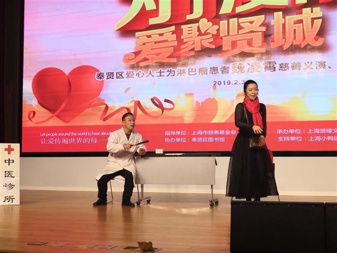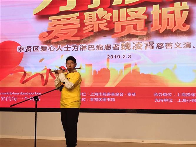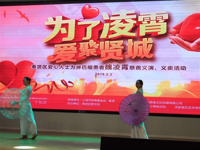 上海慈善网讯 2月3日,农历小年夜下午,“为了凌霄 爱聚贤城”——奉贤区爱心人士为淋巴瘤患者魏凌霄慈善义演、义卖活动在市慈善基金会大力支持下、社会热心人士共同努力下,在奉贤区图书馆举行。活动共筹集善款35000元。