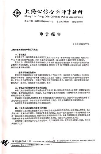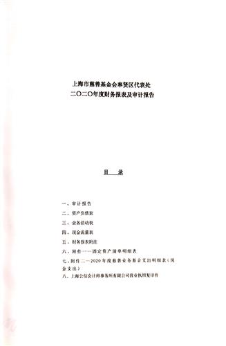 上海市慈善基金会奉贤区代表处二O二O年度财务报表及审计报告