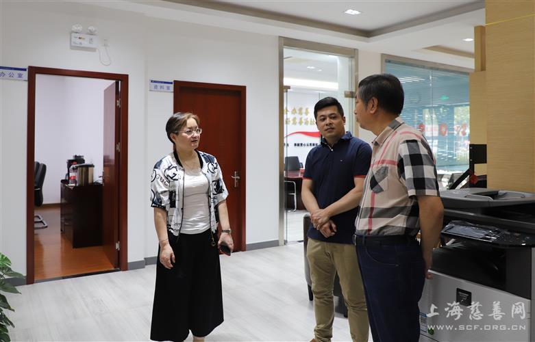 金山区代表处秘书长吴丽梅、办公室主任邵韶接待并介绍了金山区的慈善相关工作。双方就联合募捐、救助项目、爱心窗口等方面的工作经验做法进行了交流。