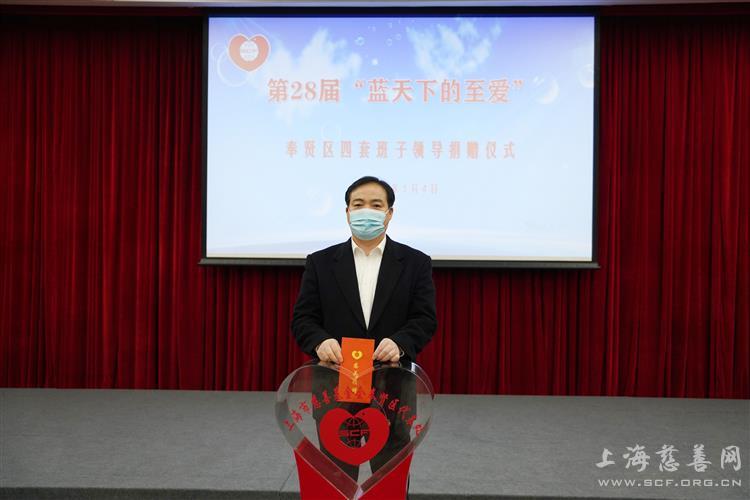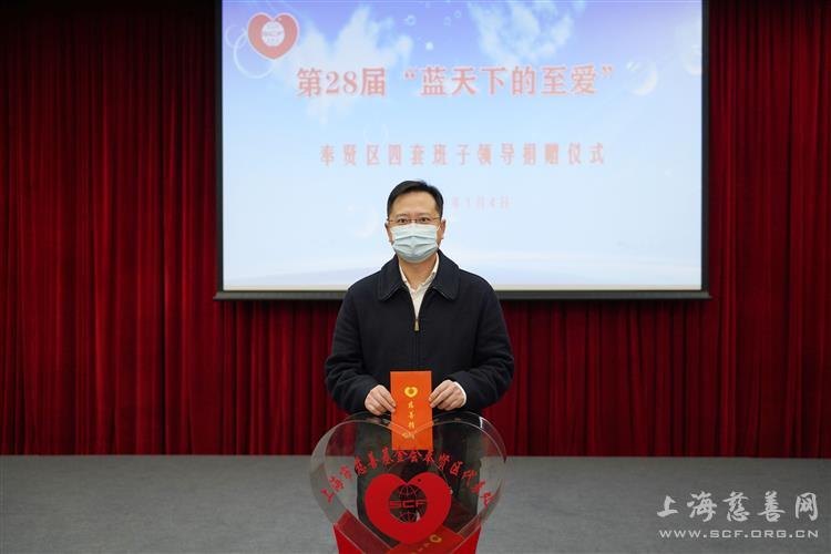 上海慈善网讯 1月4日下午,奉贤区第二十八届“蓝天下的至爱”四套班子领导捐赠仪式举行。区委书记庄木弟,区委副书记、区长袁泉,区人大常委会党组书记张培荣,区政协主席陈勇章,区委副书记骆大进等区四套班子领导依次上台捐赠,新年带头献爱心。这也是奉贤区本届“蓝天下的至爱”系列慈善活动之一。