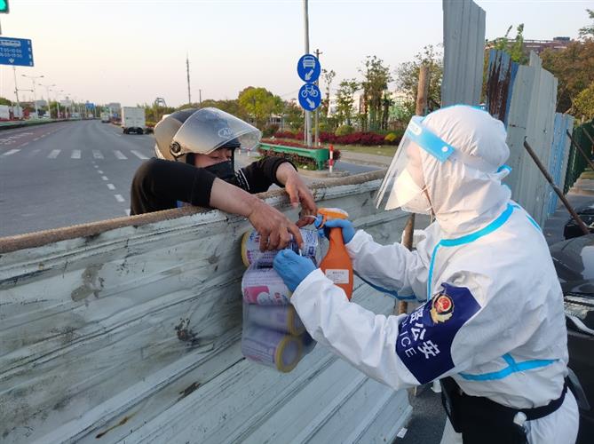 【图6:民警将奶粉交给居民】