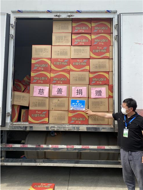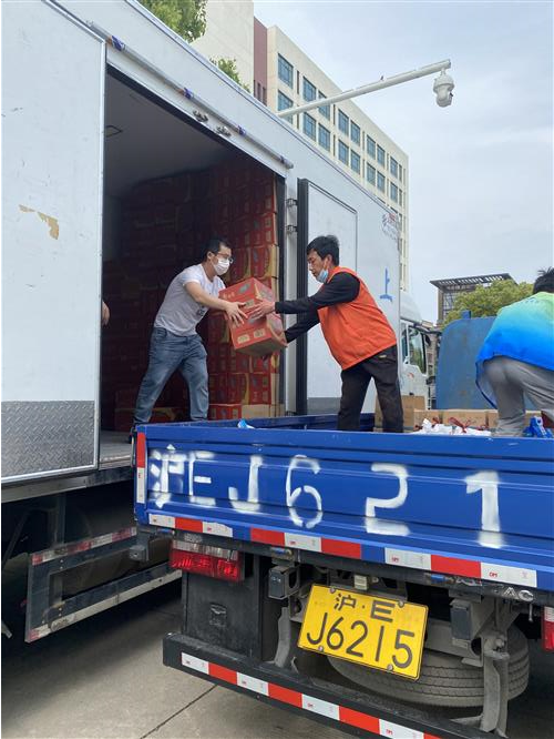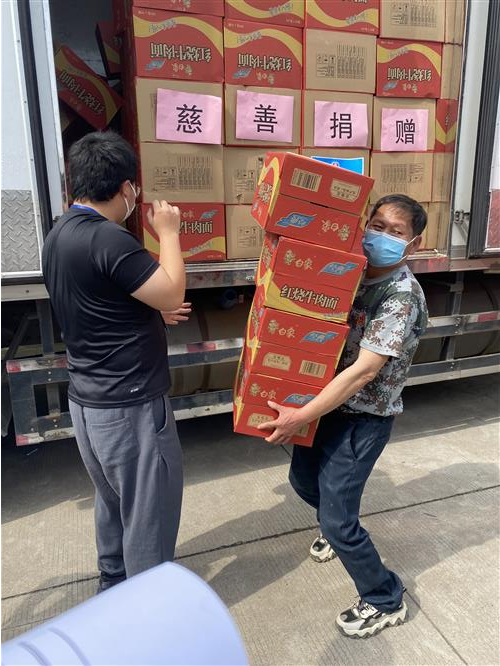 上海慈善网讯 4月25日下午,在防疫物资以及生活物资相对紧缺的时候,上海市慈善基金会再次排除万难,雪中送炭,将12000桶白象牌大骨面送到奉贤区青村镇战“疫”一线,为疫情防控工作提供生活保障。