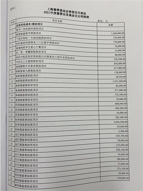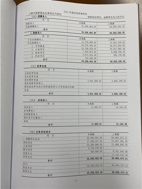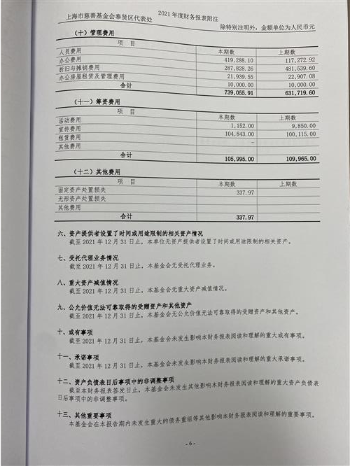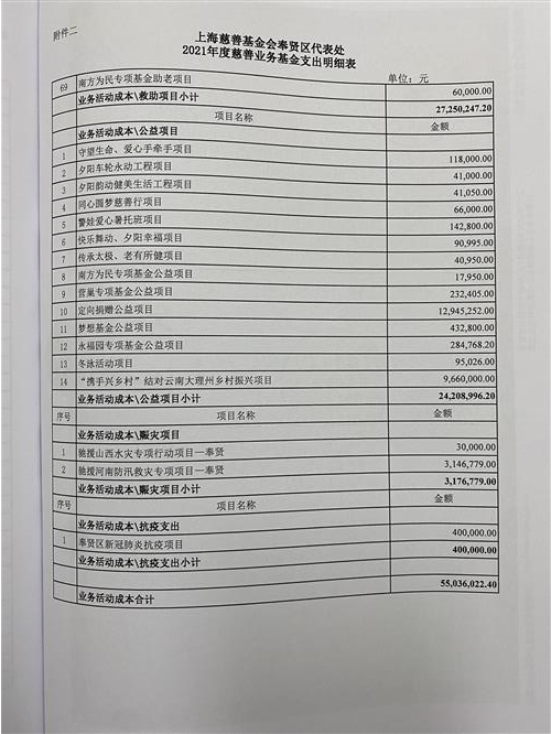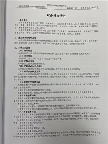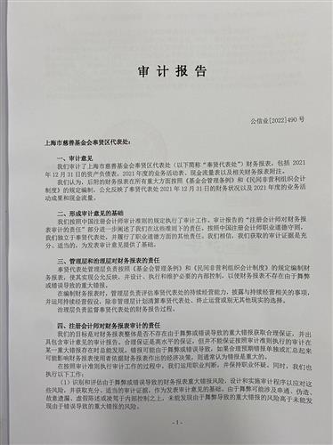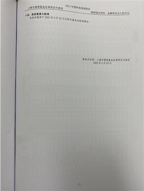 上海市慈善基金会奉贤区代表处二O二一年度财务报表及审计报告