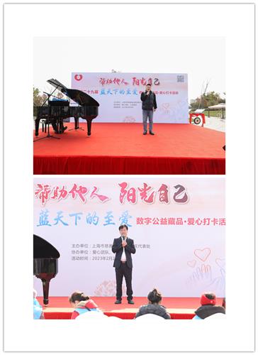 上海市慈善基金会奉贤区代表处副会长戚爱国宣布爱心打卡活动开始