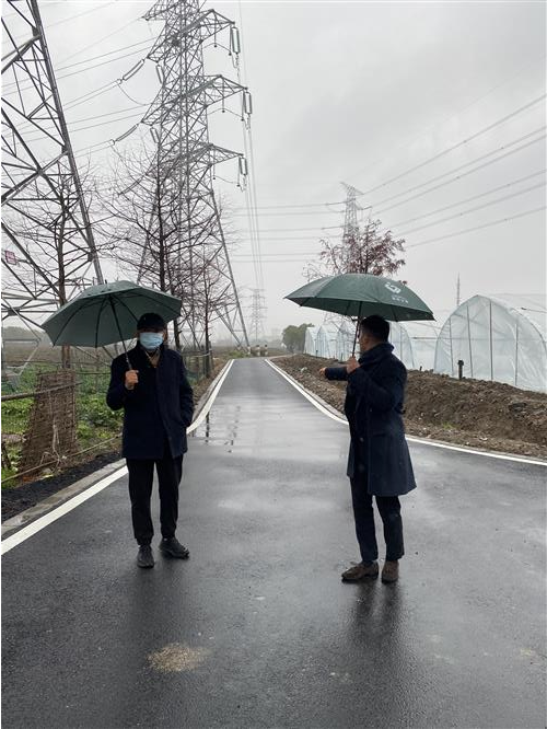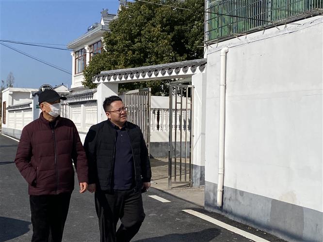图为上海市慈善基金会奉贤区代表处副会长兼秘书长实地考察项目竣工情况