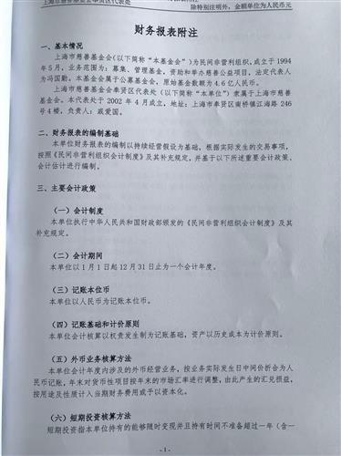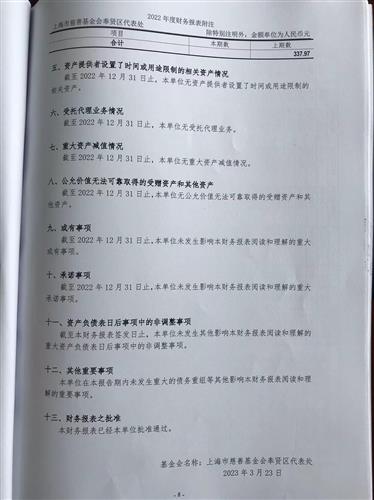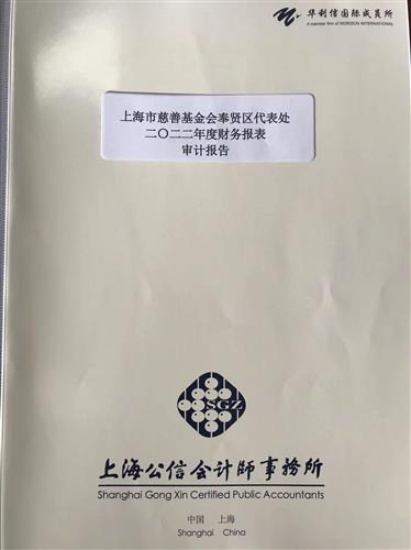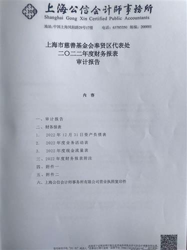 上海市慈善基金会奉贤区代表处二O二二年度财务报表及审计报告