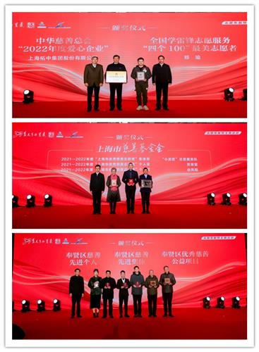 活动中,肖堃涛、唐晓腾分别为中华慈善总会“2022年度爱心企业”、全国学雷锋志愿服务“四个100”最美志愿者颁奖。副区长吕将为市级慈善先进个人、集体颁奖。市慈善基金会奉贤区代表处会长马天龙为区级慈善先进个人、先进集体、优秀项目颁奖。区人大常委会副主任包蓓英、区政协副主席邵惠娟为群众代表赠送新春大礼包。活动中,27家爱心单位代表上台进行了慈善捐赠,共计善款7811万元。
