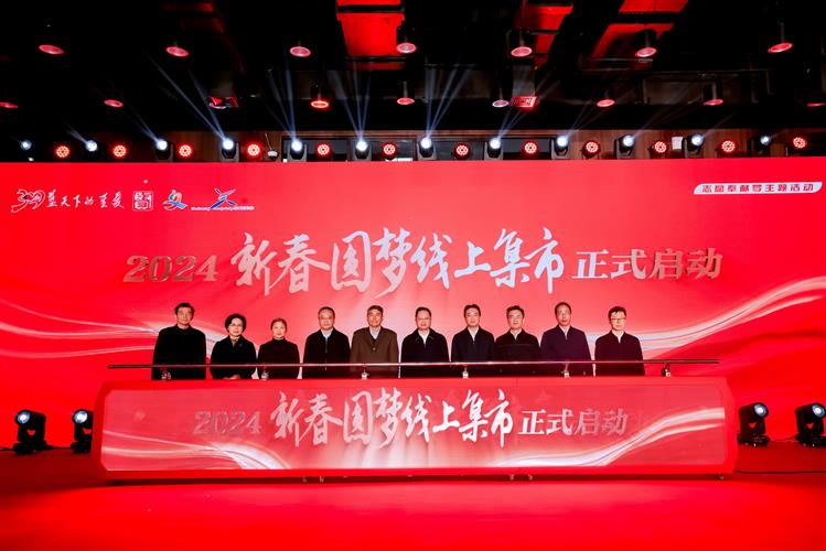 奉贤区委书记袁泉,区委副书记、区长王益群,区人大常委会主任张培荣、区政协主席陈勇章、市慈善基金会副理事长兼秘书长肖堃涛、区委副书记唐晓腾等共同开启2024新春圆梦线上集市。