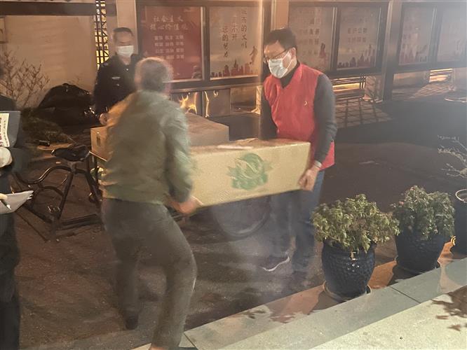 和上海市慈善基金会闵行区代表处(以下简称“区代表处“)秘书长鲍运刚老师认识已久,却不曾照面,他曾邀请我来区代表处联络工作,但种种原因一直未成行,没想到第一次来这里竟是在新冠疫情肆虐最严重的深夜。我和居委的师傅开着三蹦子,揣着通行证等手续文件,头顶星空,身披冷风,独自骑行在空无一人的街巷,因为疫情封控,路段一一被封,我们转了多个来回,在得到多个封控路段大白及民警相助,来到闵行代表处时,已夜里十一点多,但鲍秘书长和黄晓敏等老师依然在大门口的风中等着我们,内心由衷的感动和感激一时无法言表。