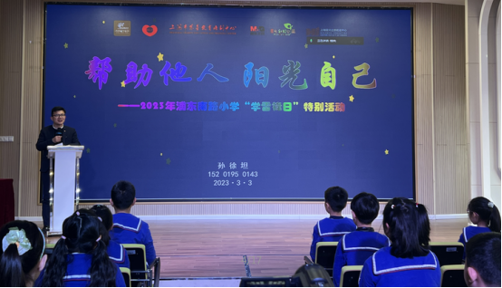 浦东南路小学书记(兼校长)赵雪华表示,浦东南路小学创建于1941 年,办学历史悠久,1997年,学校与塘桥街道办事处、海军91975部队三方共建,创办浦南海鹰少年军校。所以浦东南路小学拥有两个校名,有浦南和龙阳两个校区。多年来,立足“未来属于孩子——激发潜能、唤醒自我、成就未来”的办学理念,弘扬“宽厚包容、务实创新、坚韧不拔、追求卓越”的学校精神,践行“精、诚”的校训,我们多元建构、军校融合、努力培养学生成为有志向、有本领、有担当的具有面向未来学习能力智慧型少年。作为全国先进少年军校、全国国防教育示范校、全国学雷锋大联盟学校、浦东新区未成年思想道德建设示范校,我校师生把雷锋叔叔作为“偶像”,把学雷锋活动融入日常、化作经常。诚信友善、爱国情怀、学习雷锋等,并不是一句句空洞的口号,而是一种价值追求及融于日常细微的行为实践,这些实践本身也和慈善紧密关联,在校园中,学校在德育中融入军魂及慈善的元素,将孩子们自尊自律、诚信友善、乐学善思的具体行动诠释上墙,告诉孩子们如何做才是最美的海鹰少年,学校倡导学雷锋不是一个人,某一天的事情,而是一段长久的情怀。每年三月,更是会有持续一月的暖风系列行动洋溢在浦南的校园内外,如,小海鹰志愿队在党团员老师的带领下参加社区的公益墙体彩绘涂鸦,开展“我是清洁大师”“校园红帽子行动”等环境清扫行动,体验创造美好的乐趣;依托家委会开展“探访融媒体中心”,进行“我爱我的岗位——360行小海鹰微采访”活动,感受爱岗奉献的美好;今天的公益慈善专题讲座和爱心义卖活动更有意义,特殊青少年励志的故事令小海鹰们深受教益,爱心义卖活动更让我们浦南学子享受了传递爱心、温暖你我、助人悦己的快乐。