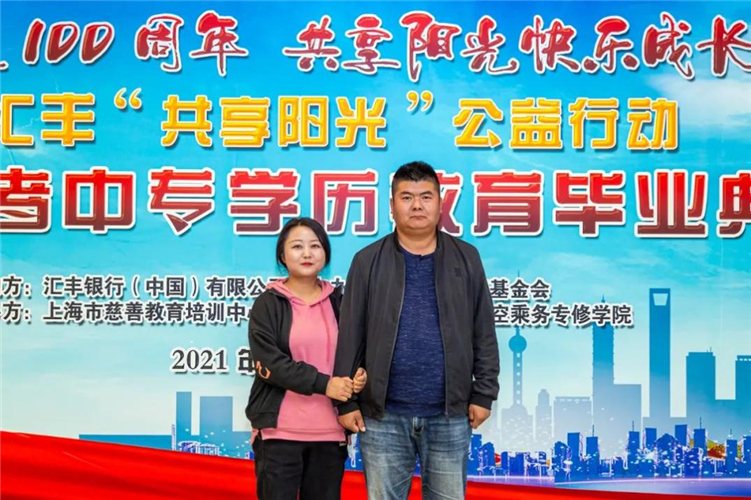 在2021年汇丰“共享阳光”公益行动中专学历教育毕业典礼上,有一对来至湖北的“共享阳光”学员伉俪郑锡伦、刘文秀,和大家一起分享了他们在阳光下成长、梦想中放飞的故事。
