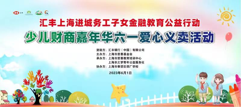 6月1日“六一”儿童节下午,汇丰“上海进城务工子女金融教育公益行动”在奉贤区邵厂学校举办了“少儿财商嘉年华六一爱心义卖活动”。全校300余名学生参加了活动,并在短短的二个小时内,筹集到了3200余元的善款。学校将用这部分义卖收入投入到学校的“爱心基金”,帮助更多需要爱来温暖、关怀,鼓舞和激励的孩子们。