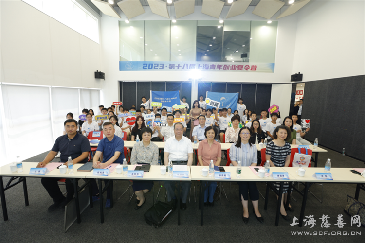 开营仪式上,上海市慈善教育培训中心主任阮显忠、上海市慈善教育培训中心高级顾问徐佩莉、上海市就业促进中心创业指导处副处长徐丽萍、上海市学生事务中心双创部副部长宋琦、虹口区人力资源与社会保障局局长金慧莲、虹口区凉城新村街道党工委书记殷光霁、北科创(集团)有限公司党委书记、董事长许勤等领导共同启动2023第十八届上海青年创业夏令营。