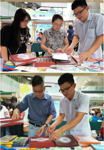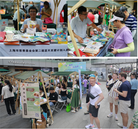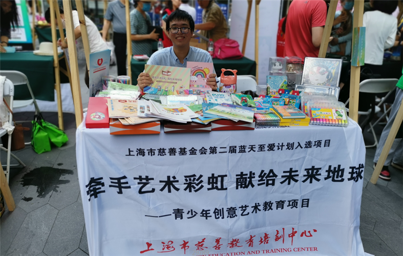 在慈善教育的摊位前,来自附近社区的居民、白领络绎不绝,工作人员向所来的伙伴们介绍了上海市慈善教育培训中心的历史、相关慈善教育项目、相关项目衍生文创产品等,很多慈善教育项目获得人们连连称赞。