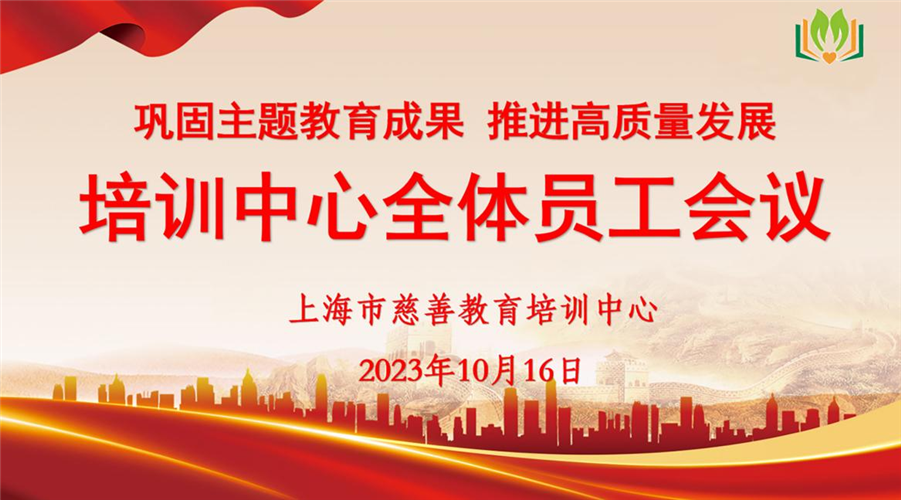 10月16日,上海市慈善教育培训中心召开全体员工会议,总结中心主题教育工作和布置上海市社会组织规范化建设5A复评后的整改等工作。上海市慈善教育培训中心主任阮显忠主持会议。