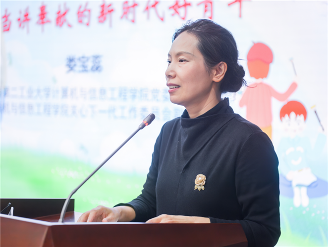 二工大计算机学院党委副书记,学院关工委副主任娄宝蕊在讲话中表示:关工委是一支非常重要的育人力量,在落实立德树人根本任务、加强青年学生思想政治教育、合力推进三全育人、培养青年学生健康成长中发挥了不可替代的作用,计算机学院关工委将积极发挥“五老”在教育引导和关爱保护青少年方面的优势作用,不断促进青少年成长成才,培养德智体美劳全面发展的时代新人。学院鼓励和支持青年志愿者在老教授的带领下,积极参与社会慈善服务活动,为“智力助残”贡献青春力量,期待同学们能肩负使命学,传承劳模工匠精神;带着问题实践学,提升志愿服务能力;紧跟时代步伐学,真正做到学以致用,发挥专业特长,收获成长进步、彰显青春风采,争做有理想守信念、懂技术会创新、敢担当讲奉献的新时代好青年。