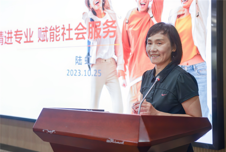 最后,二工大计算机学院原副院长陆虹老师,以“精进专业赋能社会服务”为主题,与同学们分享了自己30多年教书育人经验中的几则小故事,鼓励大学们勤奋思考,勇于探索,精进专业、精湛技术,提高社会服务能力,语重心长地告诉同学们,任何一个美好愿望,想要变成现实,都要付出不懈努力与奋斗,最后寄语同学们乘风破浪会有时,直挂云帆寄沧海,获得全场热烈掌声。