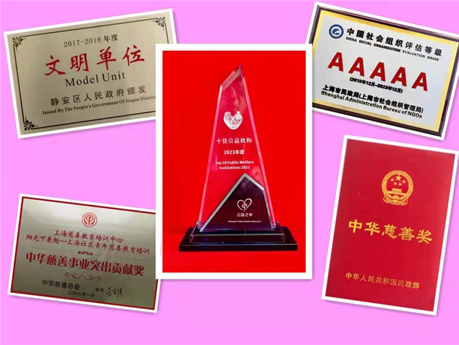 中心事实的公益项目社会成效显著,曾获得全国“中华慈善奖”、“中华慈善事业突出贡献奖”、“全国十大女性公益品牌项目奖”,第二、第七、第十届“上海市慈善之星”集体,上海市“十佳公益机构”、“优秀公益项目奖”、“十大青年公益项目奖”、“再就业培训先进集体”、“壹基金典范工程奖”、5A级社会组织、静安区“文明单位”等荣誉称号。