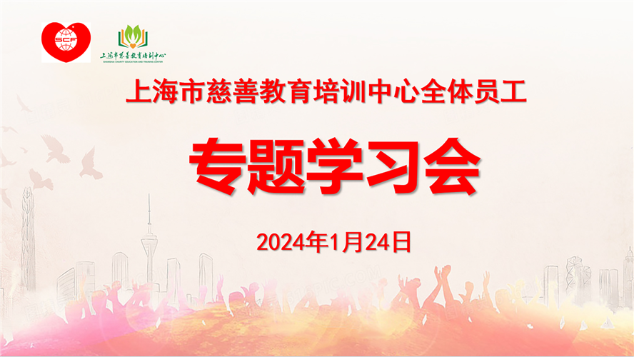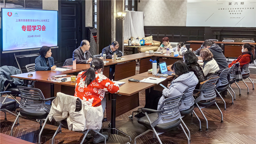 2023年12月24日,上海市慈善教育培训中心召开学习习近平主席的2024新年贺词、习近平总书记在纪念毛泽东同志诞辰130周年座谈会的讲话精神和习近平总书记在二十届中央纪委三次全会讲话精神的专题学习会。