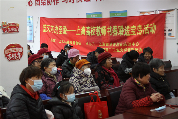 1月31日,时值甲辰龙年佳节来临之际,由上海市慈善基金会主办,上海市慈善教育培训中心和二工大老教授协会承办的第三十届“蓝天下至爱”——上海高校教师书春联送三岛活动在崇明区绿地长兴家园社区文化活动中心举办。