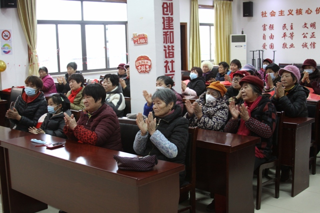 徐佩莉会长向长兴家园赠送由上海市大学书法教育协会会长、原二工大副校长瞿志豪教授为长兴家园的题词——“温馨家园”和一副金色字体春联。