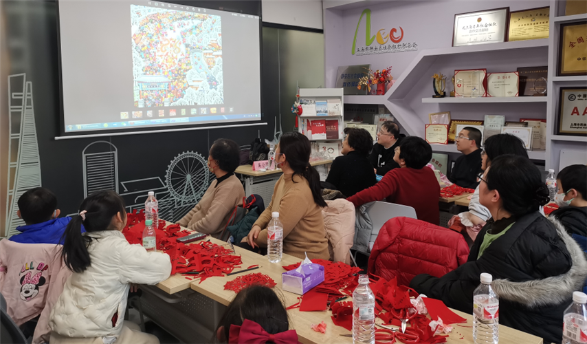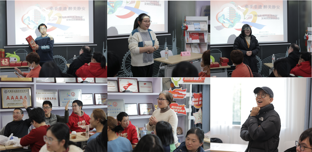 2025年1月17日,年关将近,上海市慈善教育培训中心在上海市静安区精神文明建设办公室、上海市静安区新时代文明实践中心办公室、上海市静安区新时代文明实践专项基金管委会指导下,特邀请国家级非遗传承人、上海工艺美术大师来静安区新时代文明实践中心,开展了两场“牵手非遗 醉美静安”非遗实践活动,活动以“新生活·新风尚·新年画”优秀新年画作品展示和非遗年画创作为主线,为近百名居住、和生活在静安区的青少年和家长伙伴开展文明实践新春活动,向大家展示、赏析新年画,并着手创作非遗里的年画代表作品。上海市慈善教育培训中心资源开发部主任金慧茹、静安区文明办查盼盼、静安区社会组织服务中心张伟旻、浙江新华爱心教育基金会陆晓红等领导和嘉宾出席。