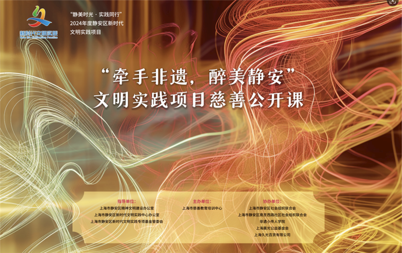 据悉:“牵手非遗 醉美静安”文明实践项目的系列活动希望工作和生活在静安区的青少年及其家长在欣赏非遗、学习非遗、创新非遗的过程中,成为非遗传承者、创新者、传播者、支持者。该相关活动的举办,也是进一步深化拓展静安区新时代文明实践中心建设工作,形成阵地网络全覆盖、文明实践品牌特色化的生动局面的有效实践。本次活动的顺利举办,也得到了上海市静安区社会组织联合会、上海市静安区南京西路社区社会组织联合会、上海市静安乐施青少年公益服务中心、非遗小传人学院、上海晨光公益基金会等单位的支持。