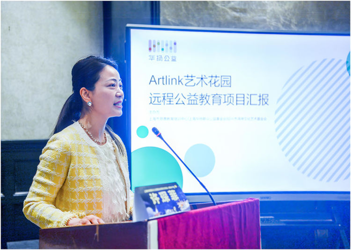 华扬联众公益基金会联合创始人兼秘书长许琛菲作了《Artlink艺术花园远程公益教育项目成果与展望》的分享,她说,“Artlink艺术花园远程公益教育项目”作为牵手的子项目,在2021年由上海市慈善教育培训中心、上海华扬联众公益基金会、鸿坤文化艺术基金会三家联手启动,始终以“用艺术点亮乡村未来”为使命,聚焦边远地区教育资源薄弱问题,为乡村师生提供系统性、可持续的远程艺术教育支持。项目实施中,大家充分认识到艺术不仅是技能的培养,更是情感的表达与心灵的滋养,尤其对留守儿童群体而言,艺术教育能有效缓解心理压力,激发创造力与自信心。能帮助孩子们形成良好的性格,保持积极乐观的生活态度,并且培养他们的社交沟通能力,让孩子们怀着感恩的心回报家庭、回馈社会。教育公平是社会公平的重要基石,这就是做好这个项目的核心理念。通过多年的努力,该项目已开发了远程艺术教育创意美术课、手工技能课、演讲口才课、故宫青少年古建筑与陶瓷实践课等4大类课程,工作覆盖云南、四川、广西等9个省份的67余学校,有约6000名学生从中接受了优质的艺术教育和人文关怀,项目还同时对40名家庭经济困难的学生开展了帮困助学活动。