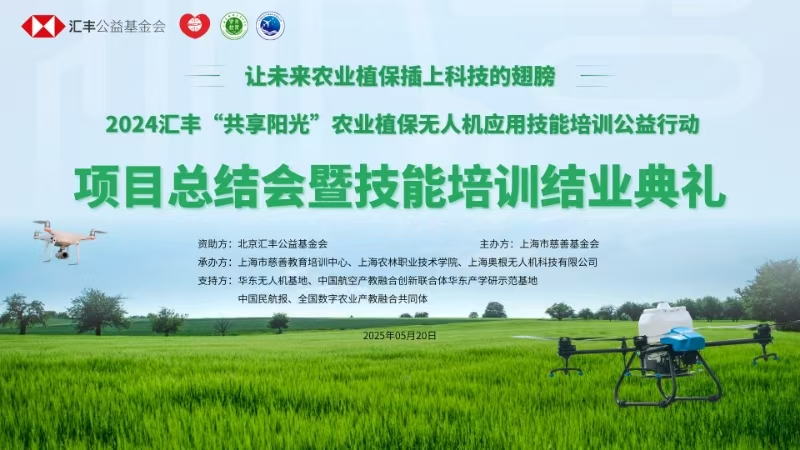 5月20日,2024汇丰“共享阳光”农业植保无人机应用技能培训公益行动项目总结会暨技能培训结业典礼在上海市农林职业技术学院举行。