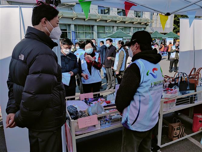 3月4日上午,上海慈善物资管理中心参加了由上海市民政局直属机关党委和南码头街道党工委共同举办的“品质码头扬新帆,文明创建新征程——三五学雷锋志愿服务活动”。在南码头中心广场活动现场,物管中心设置了慈善义卖摊位,义卖物品有服饰、包袋、围巾、帽子等。活动筹集善款600余元,将用于社会公益救助项目。