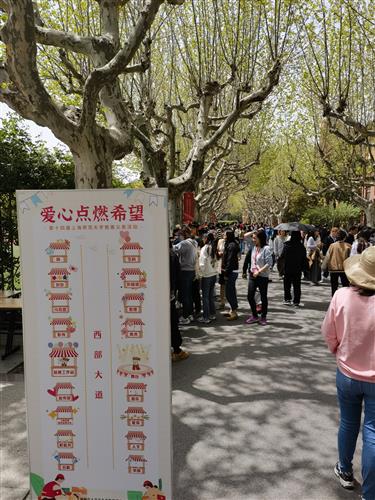 4月12日,上海师范大学举办了第十四届上海师范大学“爱心点燃希望” 慈善爱心屋义卖活动,共义卖筹得慈善1655元,将全部通过上海市慈善基金会、上海慈善物资管理中心,定向用于社会救助项目。
