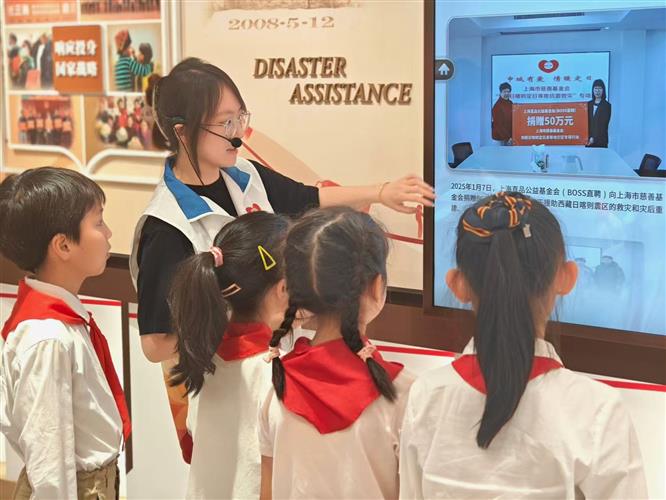 在捐赠仪式前,孙校长一行在展示厅讲解工作人员陪同下,参观了以“至爱上海 美美与共”为主题的慈善文化展示厅。展厅生动呈现了上海慈善事业三十载的发展历程与丰硕成果,师生们通过观看主题短片介绍、慈善爱心活动、慈善楷模感人故事以及陈列的珍贵展品实物,深刻了解了申城源远流长的慈善文化,学习了众多慈善人物的高尚情怀与典范事迹。