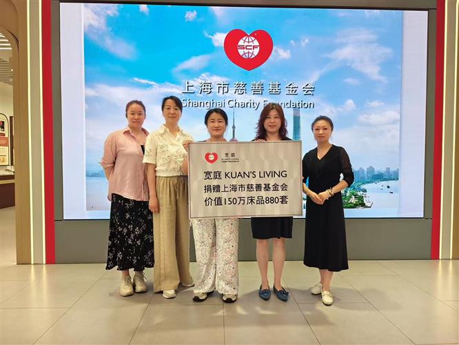 参观过程中,陈怡静、李许女士特别关注了企业过往公益行动的成效。在与上海慈善物资管理中心主任李凝的交流中获悉,宽庭KUAN’S LIVING 此前已向上海市慈善基金会捐赠总价值150万元的高品质寝具880套,用于帮扶困难群体。目前,这批爱心物资已悉数分发至崇明区贫困家庭及普陀区等地敬老院。令参访团队尤为欣慰的是,他们了解到普陀区敬老院的具体使用情况:院内居住着许多共度金婚的老年夫妇,而宽庭捐赠的带有花卉、龙凤呈祥等传统喜庆纹样的寝具,正契合了老人们的婚庆纪念需求。这些寝具不仅切实改善了长者的睡眠环境,更增添了他们生活的温馨与喜悦,成为一份承载美好祝福的特别礼物。亲眼见证企业爱心产品为特定群体带来的切实改变和由衷喜悦,令团队深受触动。