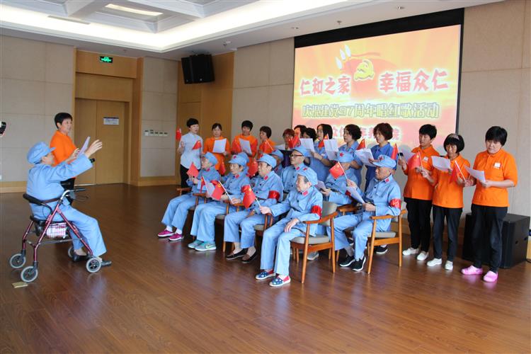 上海慈善网讯 今年是建党97周年,在这个红色的七月,众仁老年养护院组织全体住养老人及护理人员开展“庆七一、歌唱党”红歌大合唱活动。院内老人中有好几位是有着60年以上党龄的老党员,对于党充满了热爱和感激之情。在党生日之际,他们饱含激情献上一首首经典红歌。