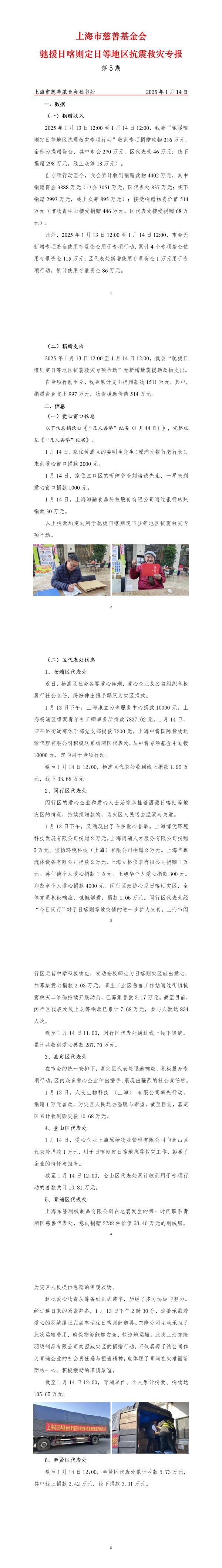 上海市慈善基金会"驰援日喀则定日抗震救灾"专报(第5期)