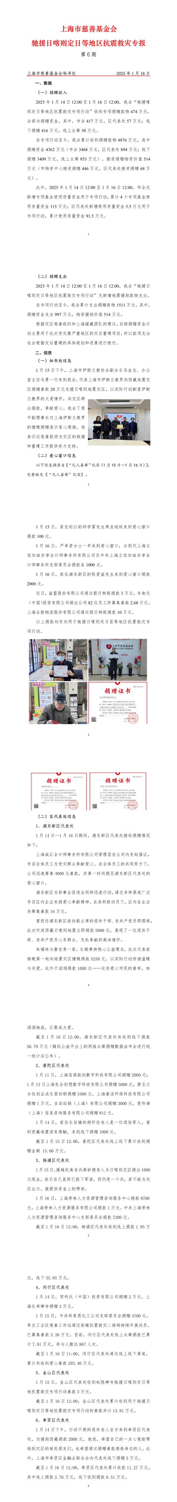 上海市慈善基金会"驰援日喀则定日抗震救灾"专报(第6期)