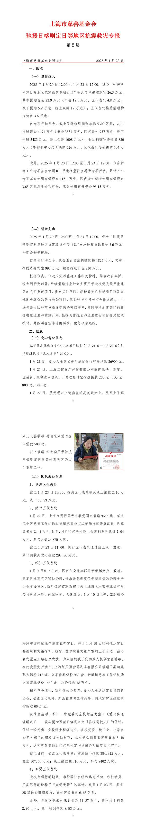 上海市慈善基金会"驰援日喀则定日抗震救灾"专报(第8期)